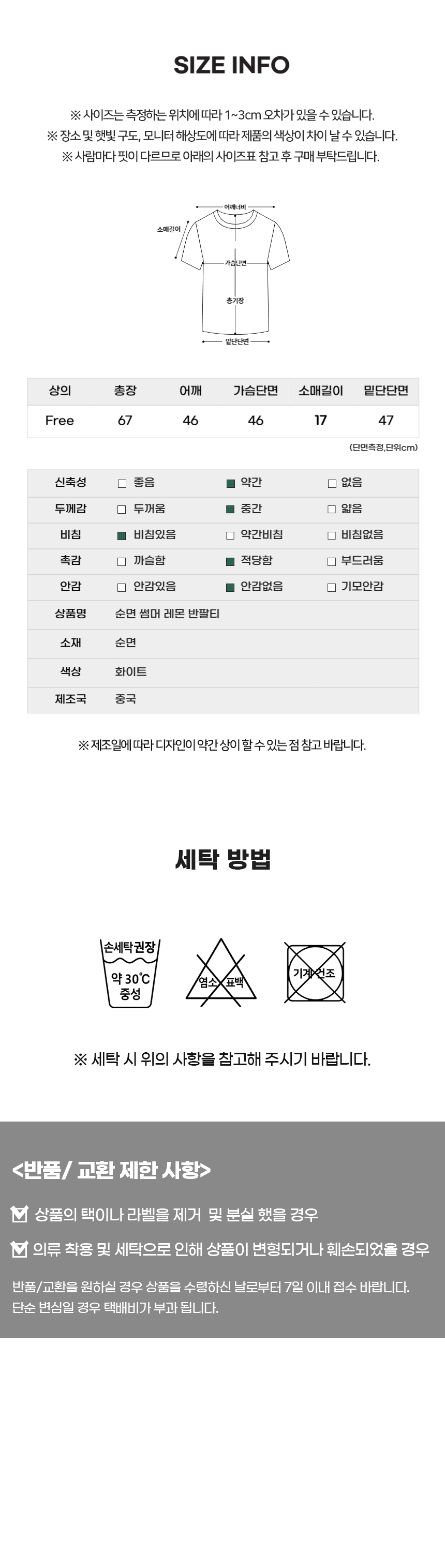 • 단순변심으로 인한 반품 시, 배송 완료 후 7일이 지나면 취소/반품 신청이 접수되지 않습니다.