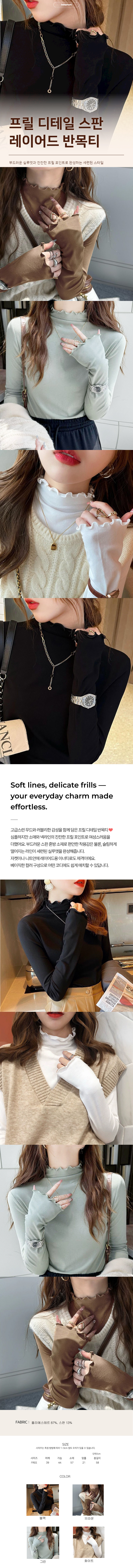 여성 피치 기모 반목 폴라 티 이너 티셔츠 브라운
