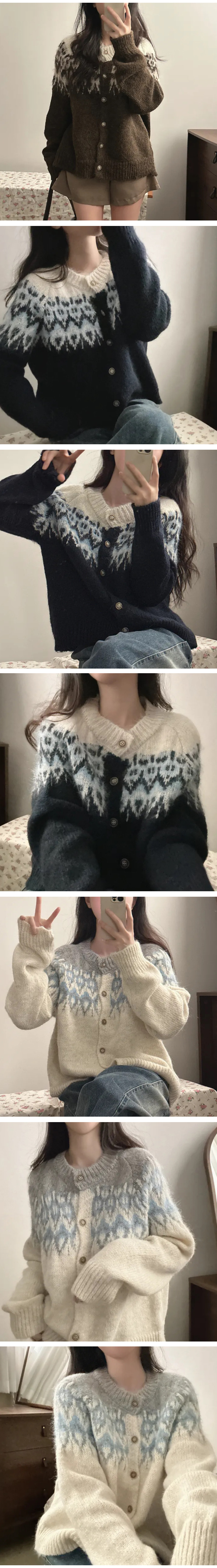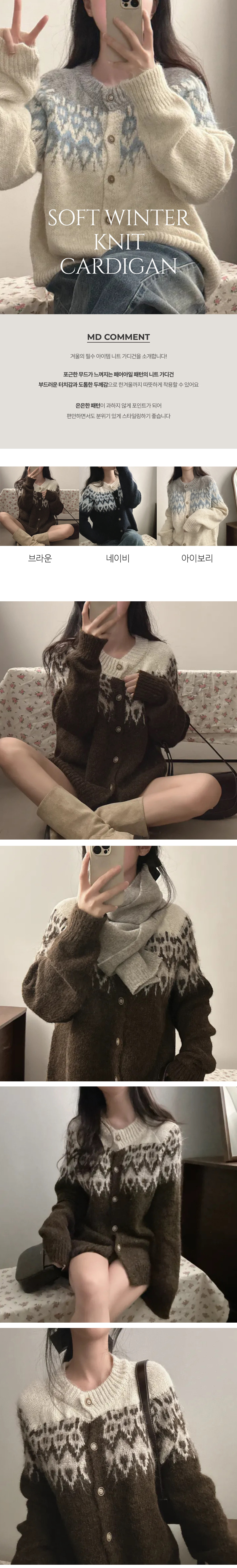겨울 패턴 도톰 여성 예쁜 긴팔 니트 가디건