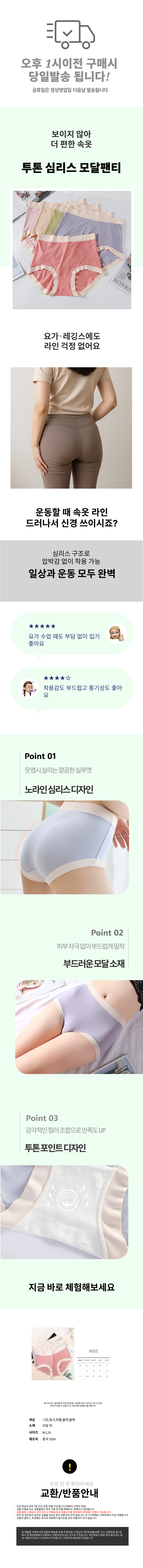 모달팬티 운동 심리스 노라인 투톤 무봉제 편한 가죽