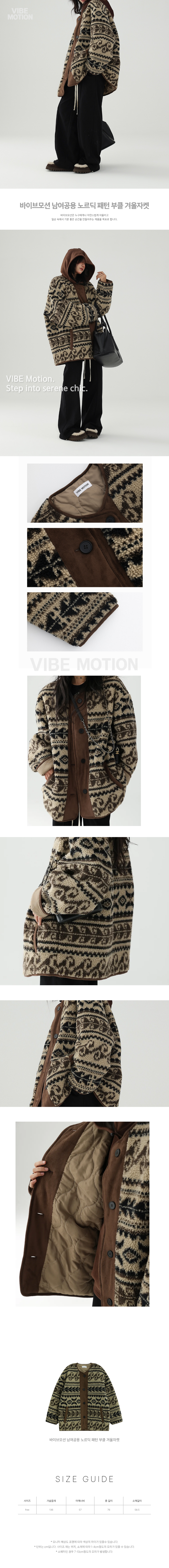 바이브모션 시그니처 노르딕 패턴 부클 겨울자켓