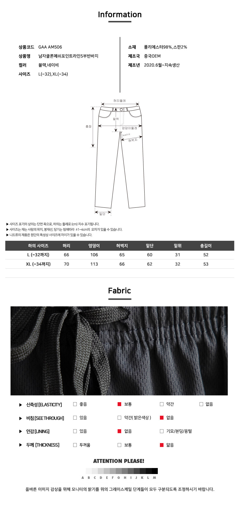 GAA AM506 남자쿨론메쉬포인트라인5부반바지