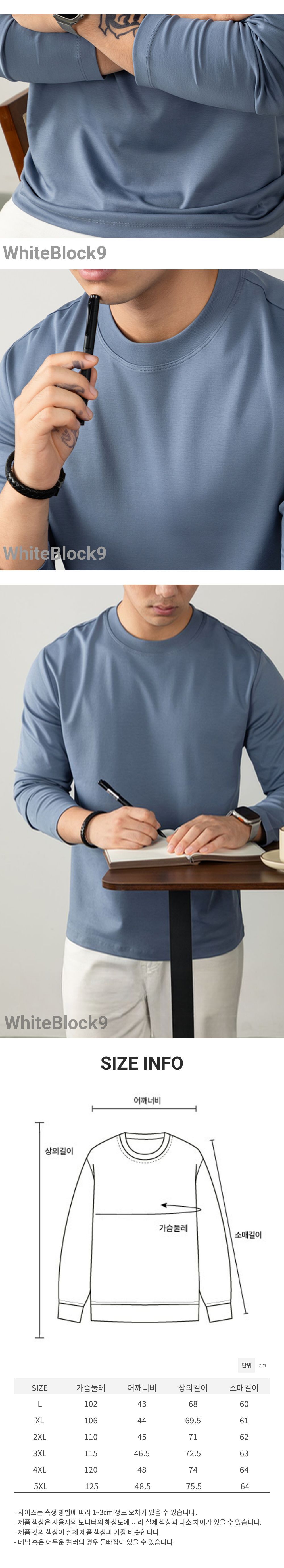 화이트블럭9 블랙 화이트 남자 머슬핏긴팔 레이어드티 짐웨어 라운드 긴팔티셔츠