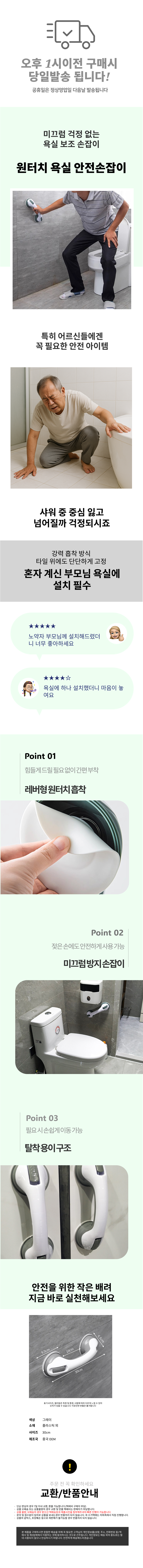 타일 원터치 압축 레버 화장실 욕실 안전 손잡이