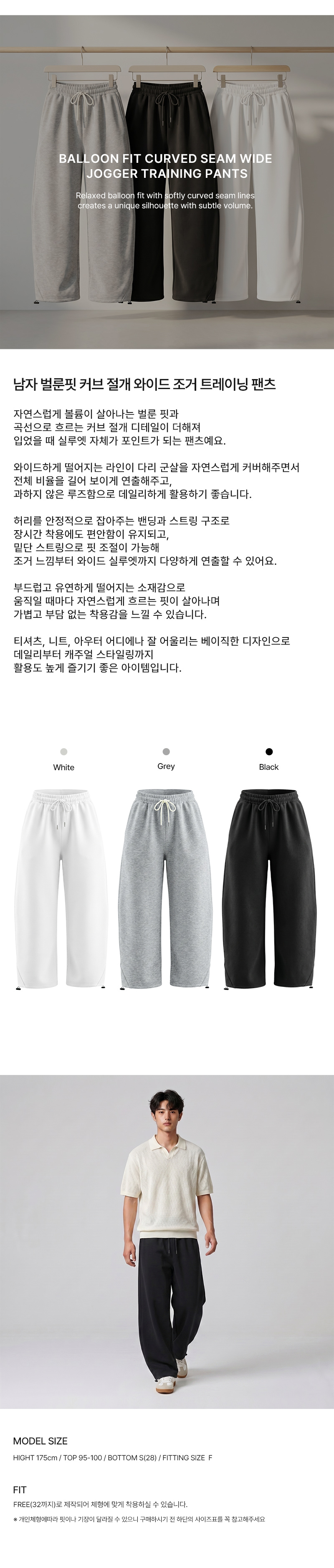 AGG 1000M 남자 벌룬핏 커브 절개 와이드 조거 트레이닝 팬츠