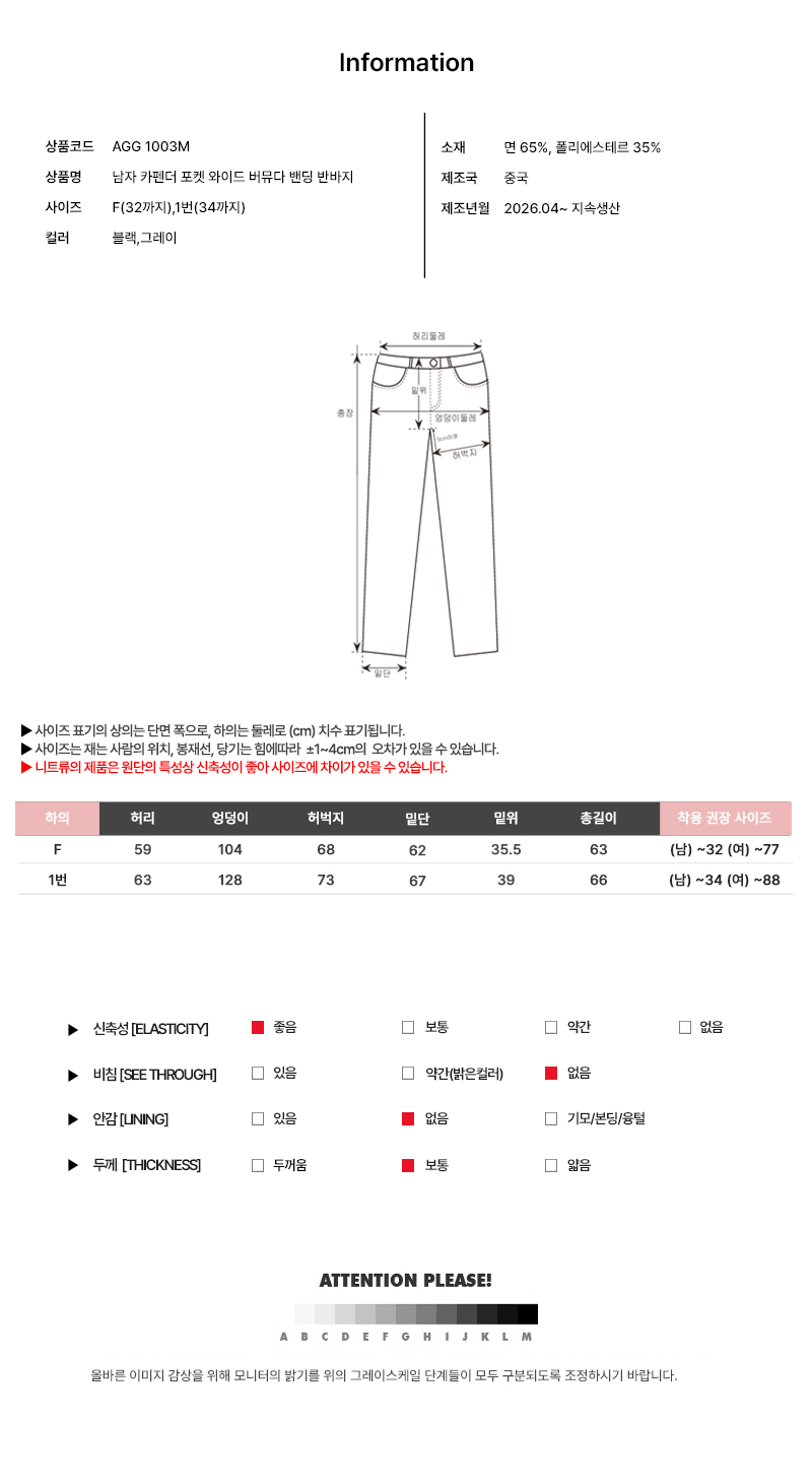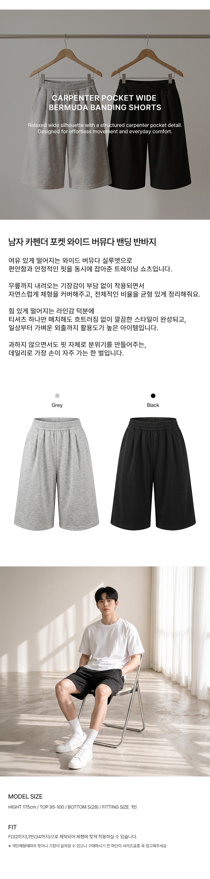 AGG 1003M 남자 카펜더 포켓 와이드 버뮤다 밴딩 반바지