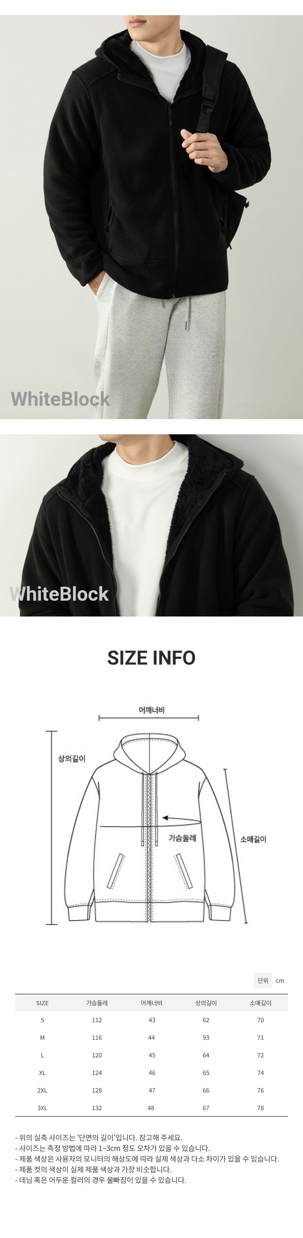 화이트블럭9 블루 남자 베이직 무지 빅사이즈 오버핏 모자큰 후디 주문제작 기모후드집업