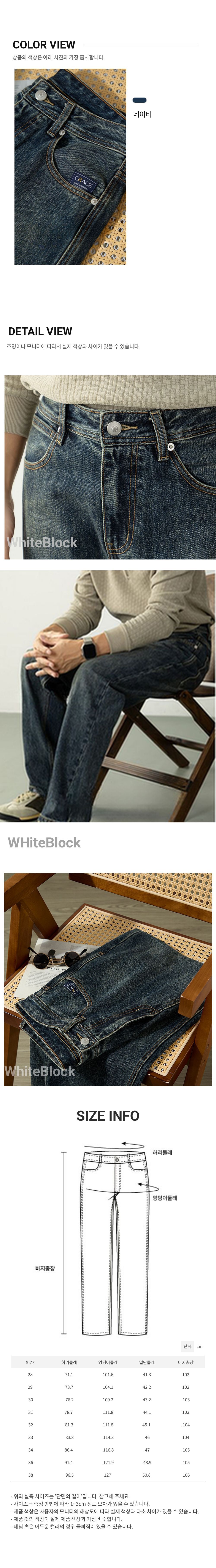 화이트블럭9 테이퍼드 세미와이드 편한 워싱 데님청 남성청바지 진청 테이퍼드 남자일자청바지