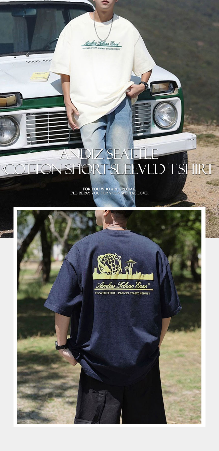 남성 코튼 면 반팔 프린팅 남자 여름 티 셔츠 ivory