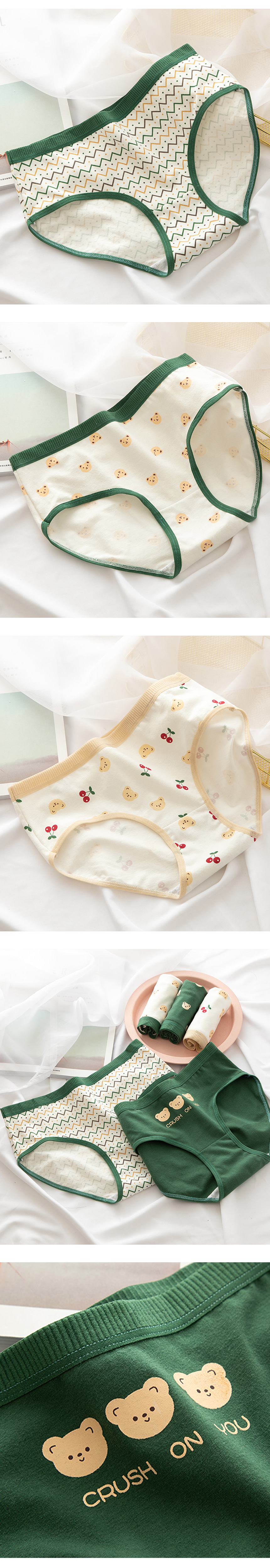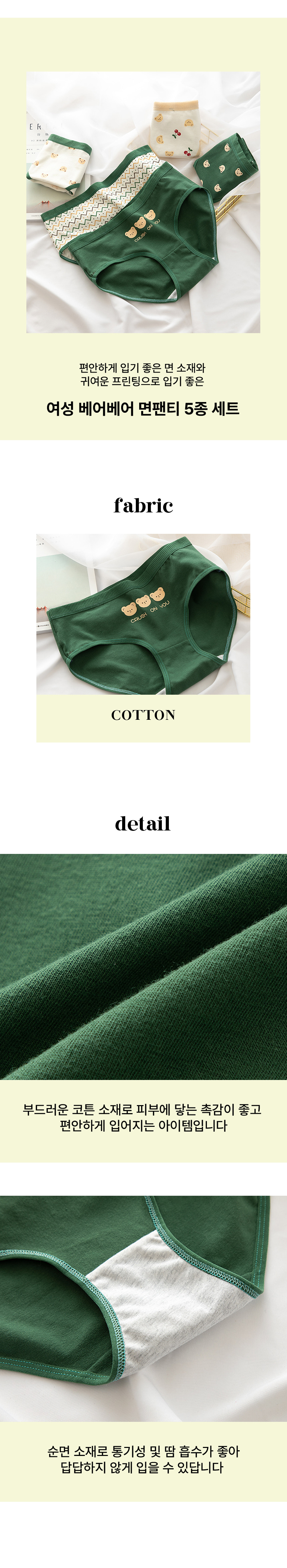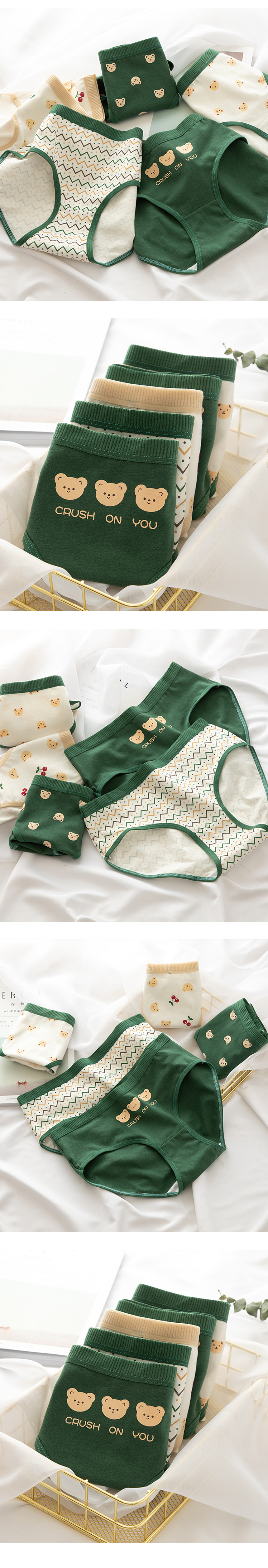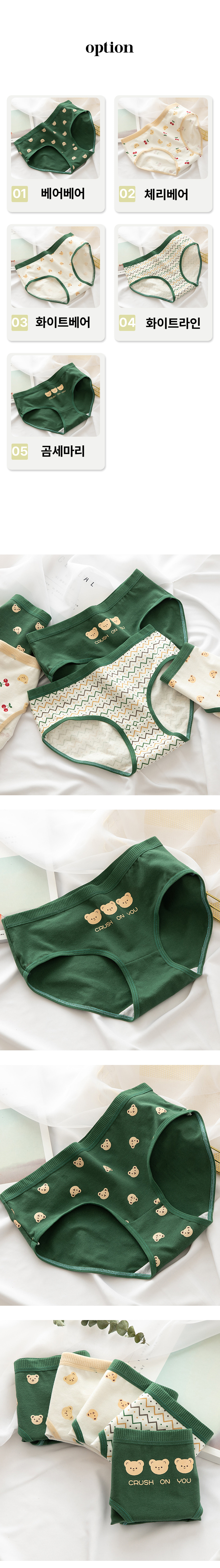학생 귀여운 곰돌이 면 여성 팬티 5종 세트 XL