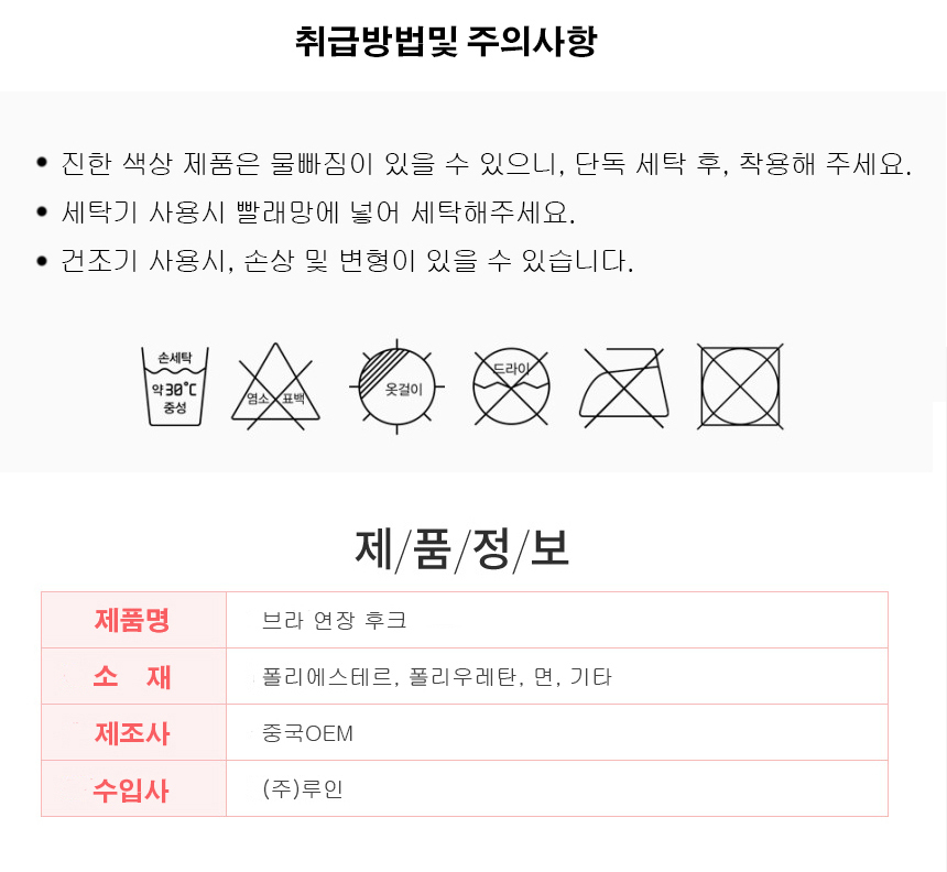 | 세탁방법/취급시 주의사항 | 상세설명페이지 참고 |