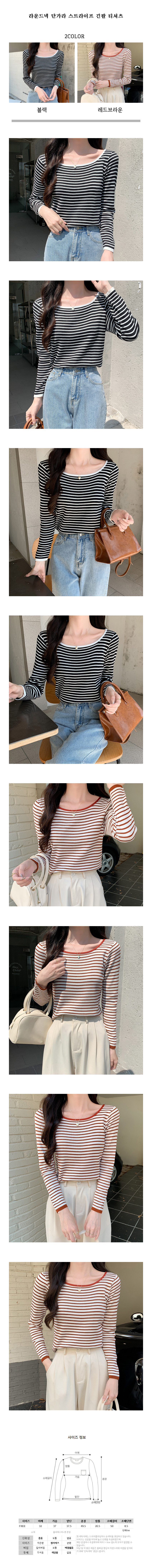 라운드넥 단가라 스트라이프 니트 긴팔 티셔츠
