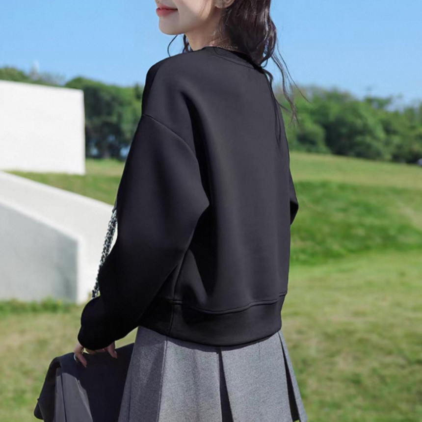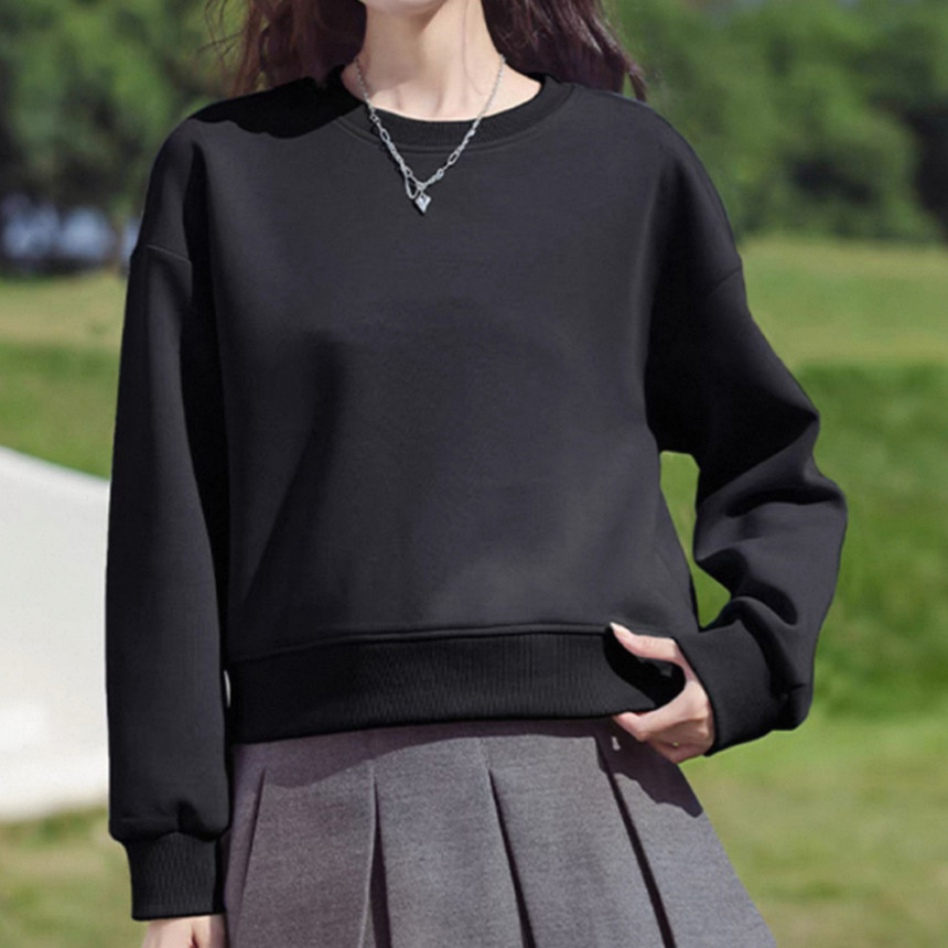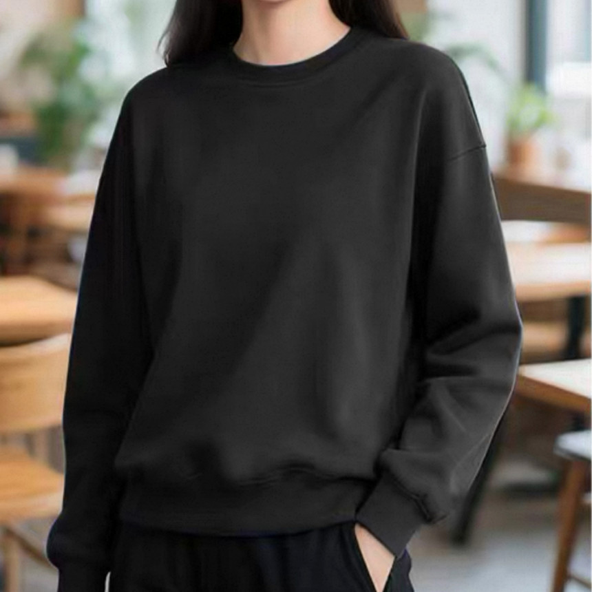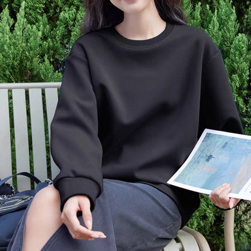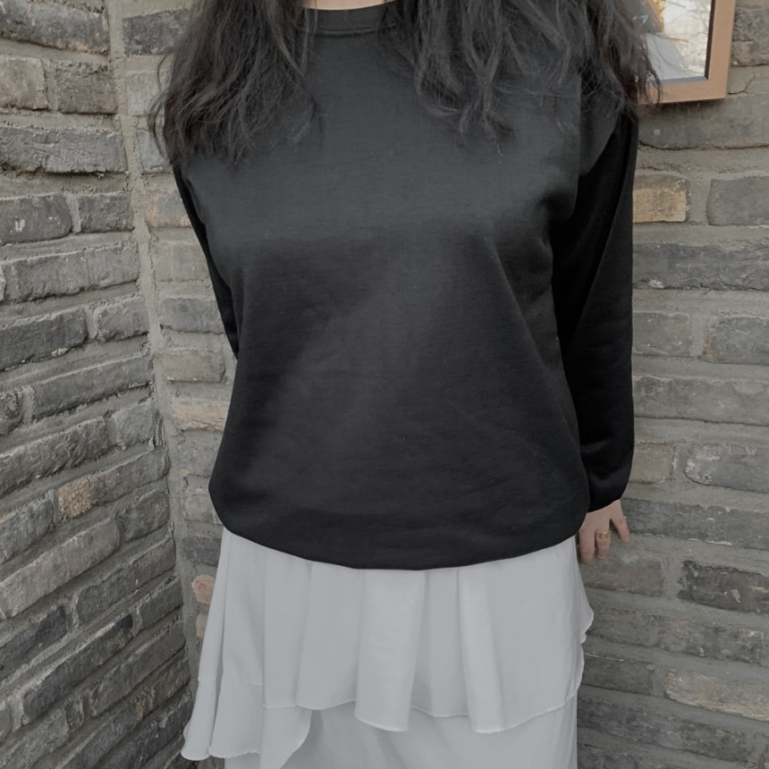 여성 스판 무지 긴팔 맨투맨 티셔츠 검정색