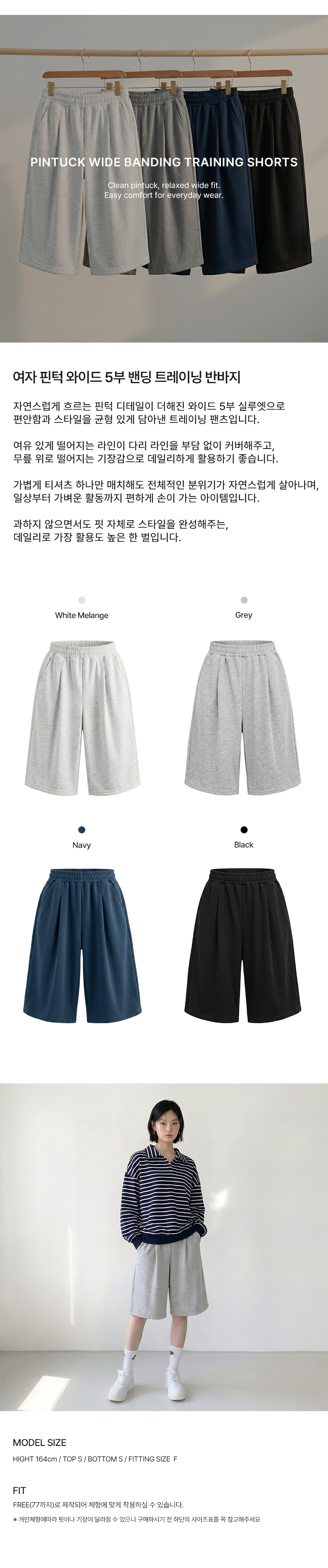 AGG 1002W 여자 핀턱 와이드 5부 밴딩 트레이닝 반바지