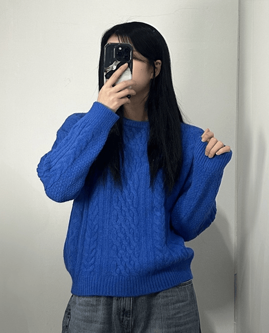 여성 꽈배기 라운드 니트 티 4color 크리스마스 데일리 기본 여자 라운드넥