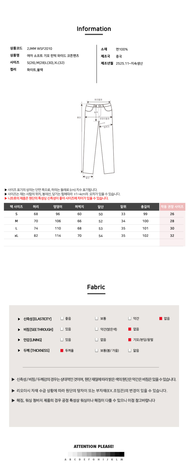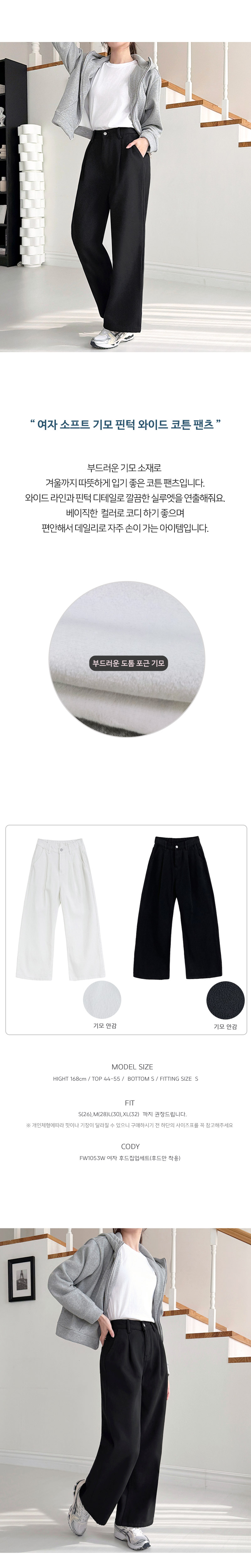 2JMM WSF2010 여자 소프트 기모 핀턱 와이드 코튼팬츠