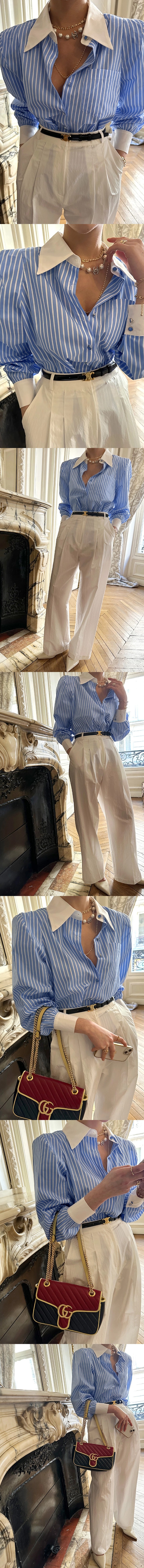 쥬디제이 스프라이트셔츠 스트라이프남방 여성정장셔츠 여성핑크셔츠 여자카라셔츠 여성슬림셔츠