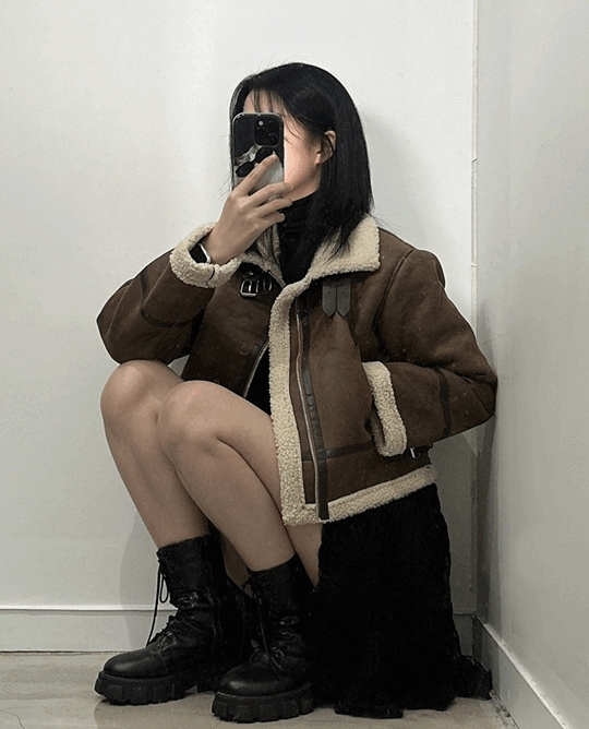 양털 안감 스웨이드 무스탕 자켓 2color 버클 하이넥 크롭 퍼 카라 뽀글이 숏 세무