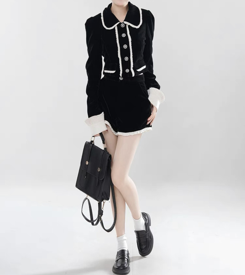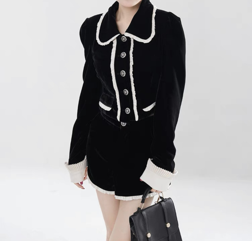 벨벳 투피스 세트 자켓 숏팬츠 데이트 하객 청담동며느리룩
