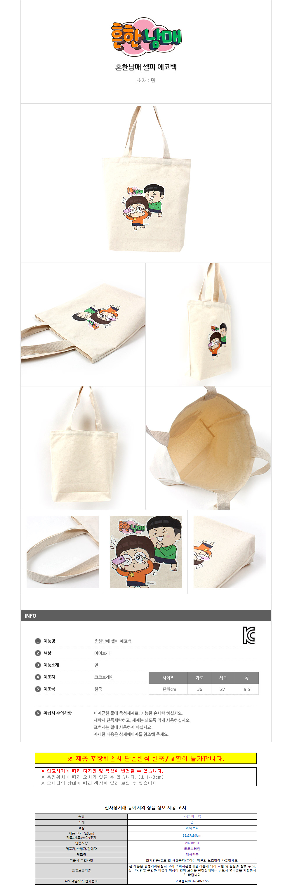 코코브레인 흔한남매 셀피 에코백