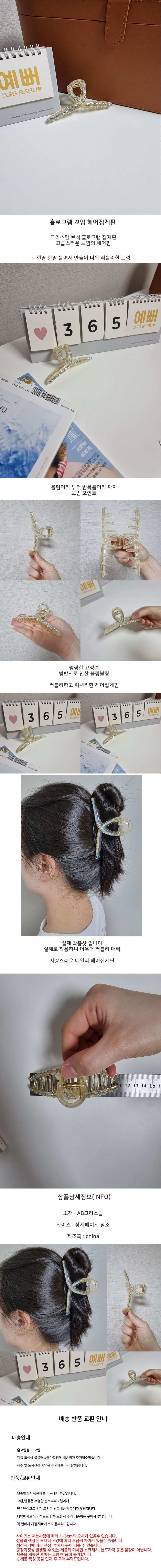 여성 여자 홀로그램 헤어핀 머리핀 러블리 럭셔리 고급 헤어 집게핀