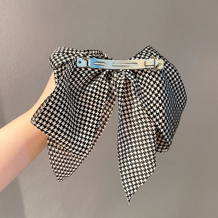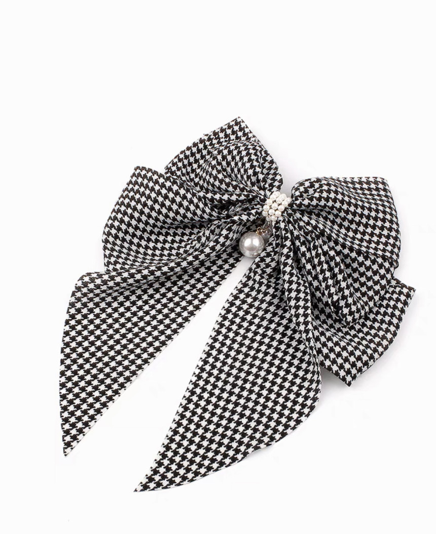 체크 진주 왕 리본 머리핀