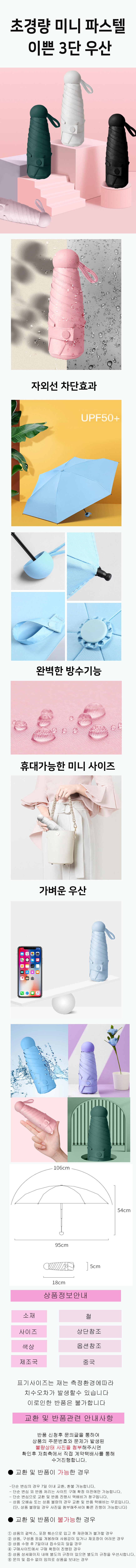 초경량 이쁜 파스텔 미니 휴대용 3단 우산