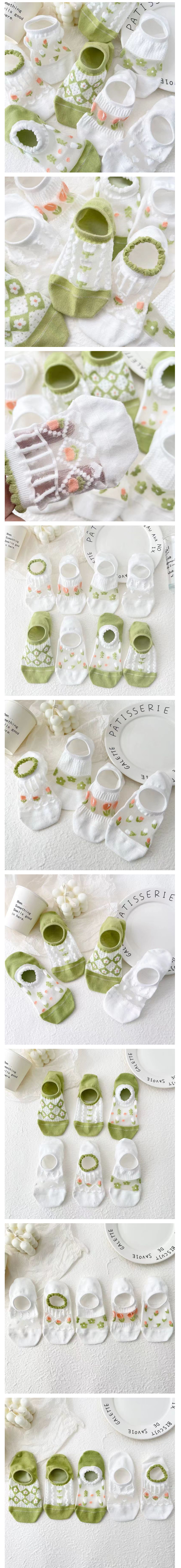 여성 여름 메쉬 덧신 여자 꽃무늬 예쁜 양말 8개 세트