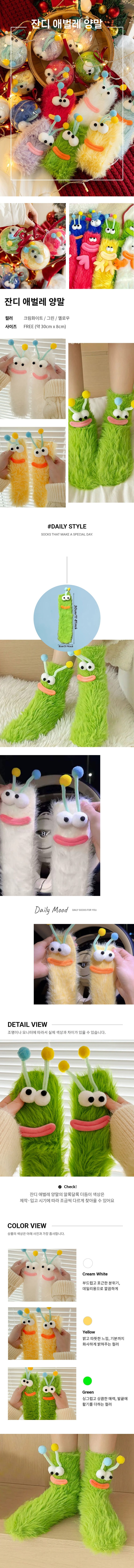 잔디 애벌레 수면양말 두꺼운 캐릭터 양말 삭스 니삭스 보온 무압박 쓸데없는 특이한