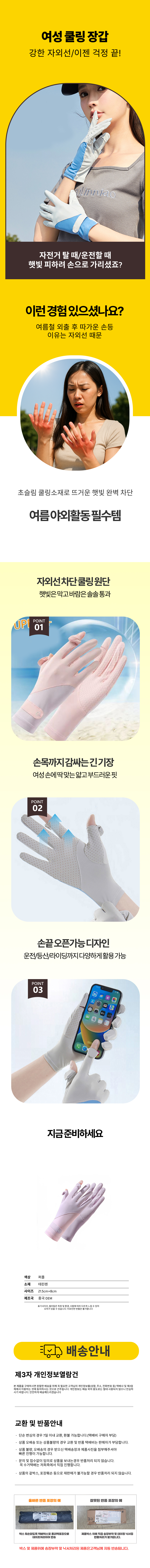 여성 쿨링 장갑 UV차단 야외용 운전용 자전거 신축성