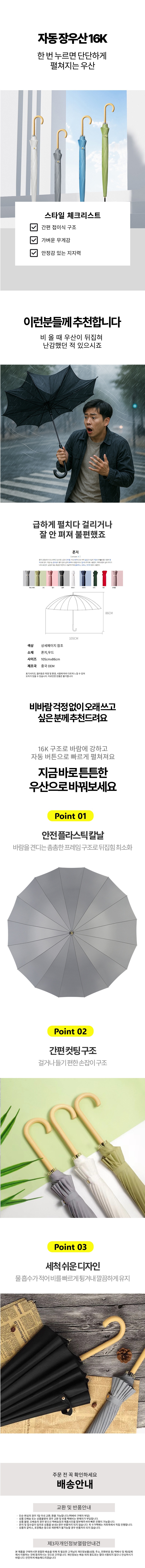 고급 16K 답례품 우드손잡이 심플한 빗물받이 우산