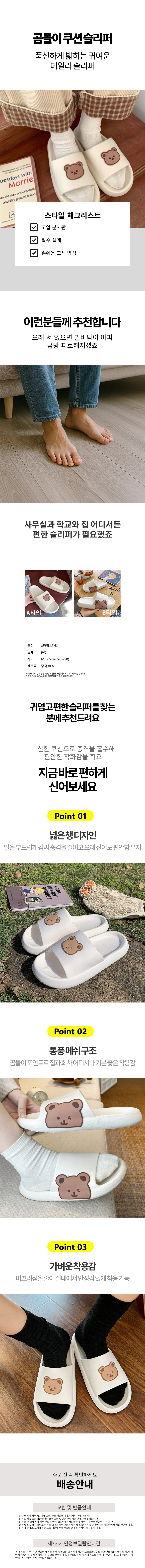 사무실 곰돌이 거실화 실내화 실내 여성 남성 슬리퍼