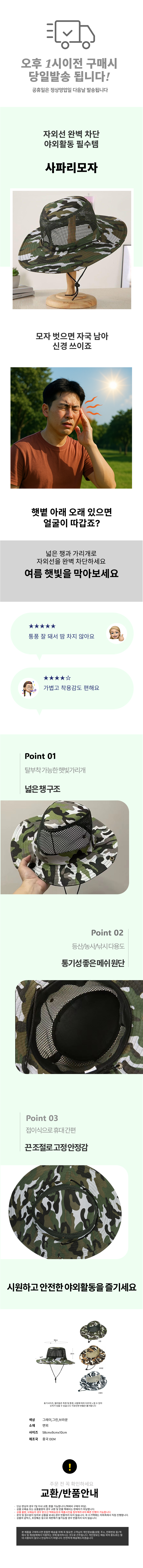 등산 통풍 메쉬 작업용 자외선차단 농사 햇빛 모자