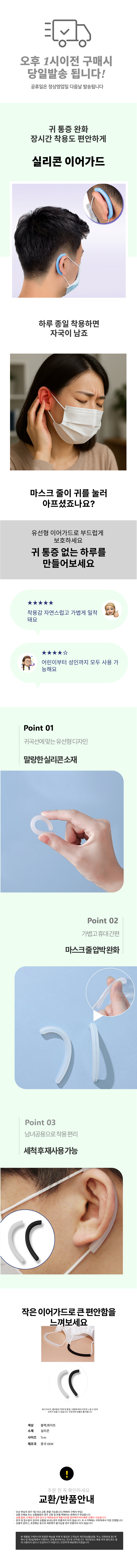 유선형 마스크 귀보호 실리콘 이어 가드 귀그립
