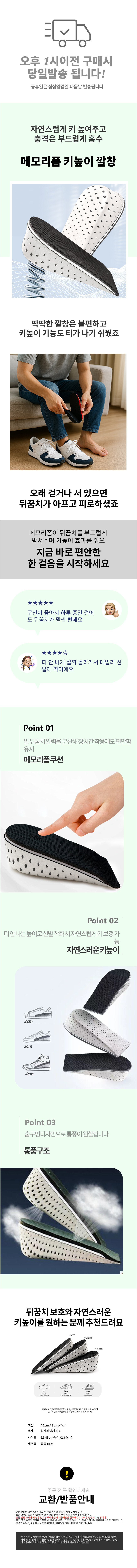 뒷꿈치 메모리폼 키높이 깔창 자연스럽고