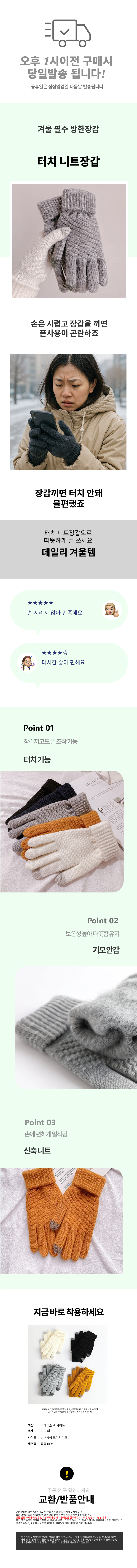터치 니트장갑 와플 골지 기모 겨울장갑 골프 니트
