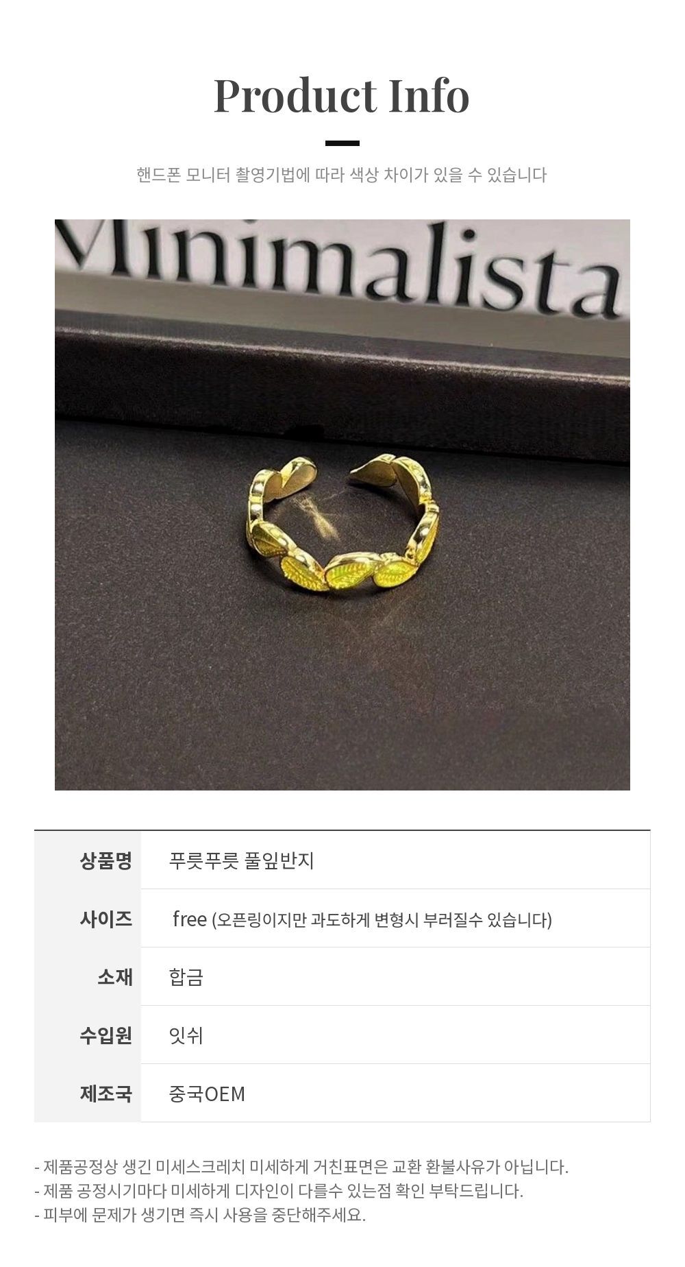 풀잎반지 특이한 웃긴 우정 커플 오픈 링 반지 검지 중지 애끼 반지 악세사리 쥬얼리 선물