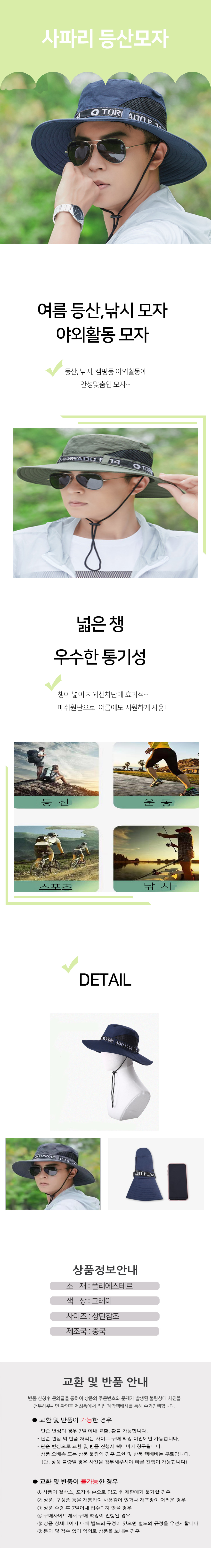 여름모자 야외활동모자 등산 낚시 캡핑 남여공용모자