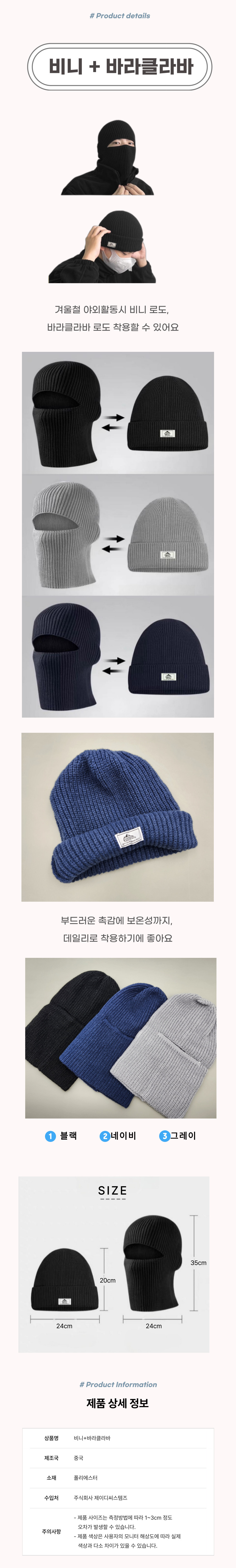 바라클라바 겸용 비니 겨울 니트 모자 벙거지 방한