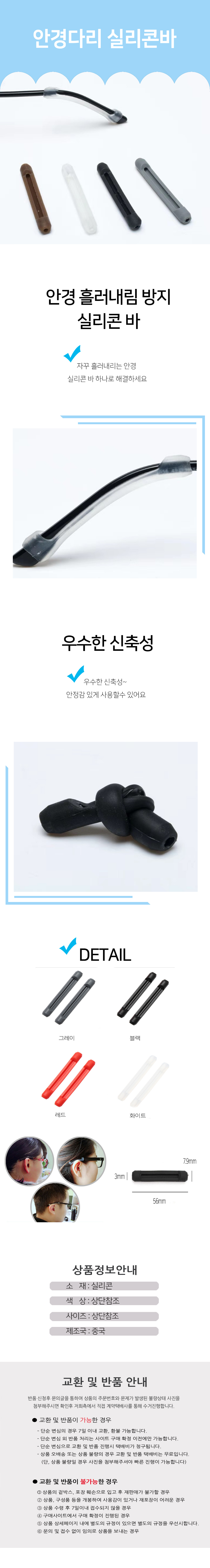 안경흘러내림 실리콘 안경다리 고정 귀아픔