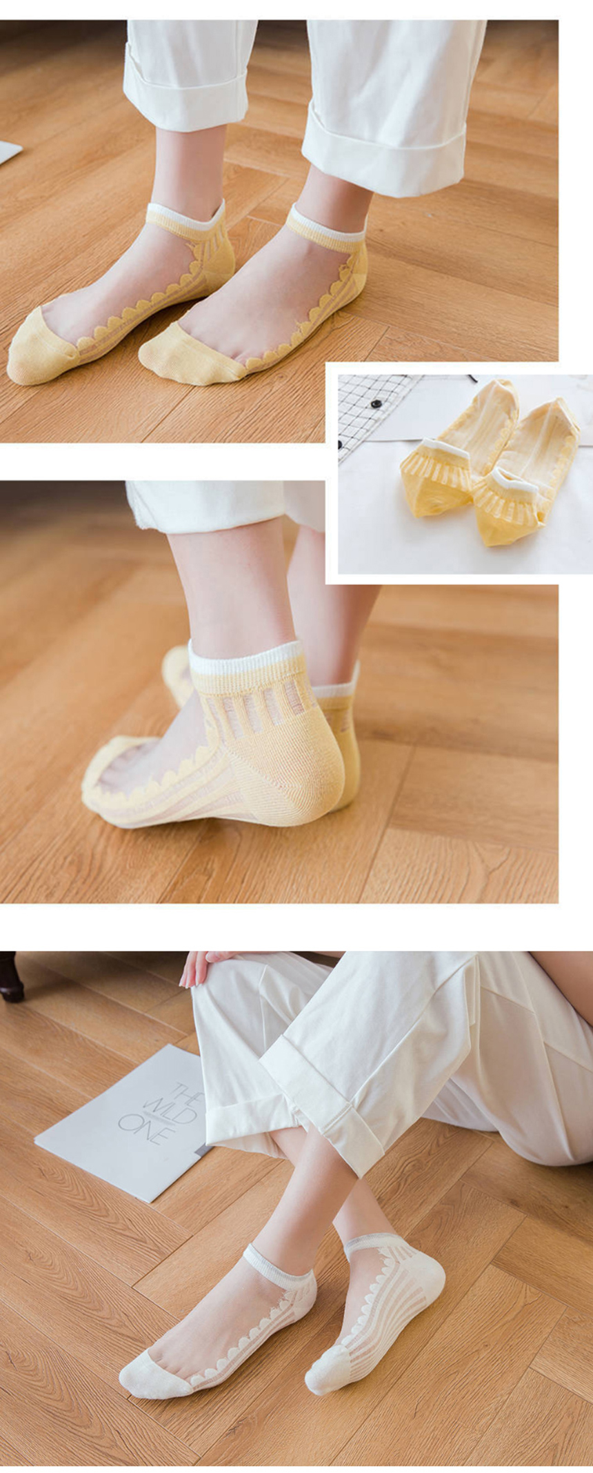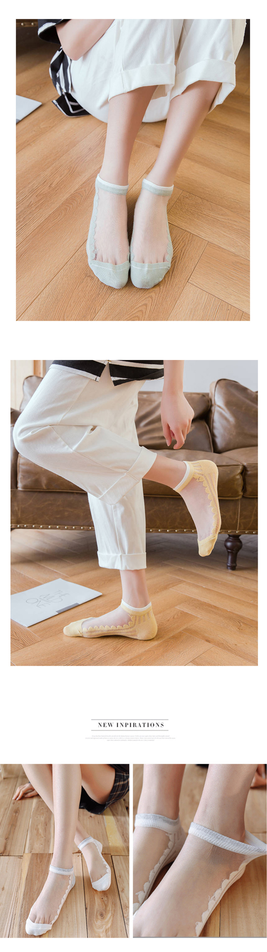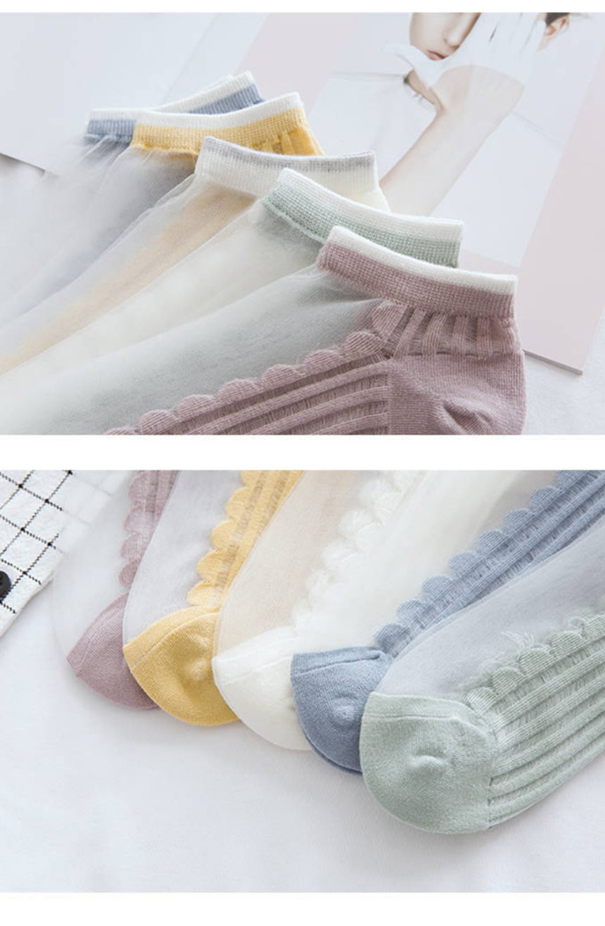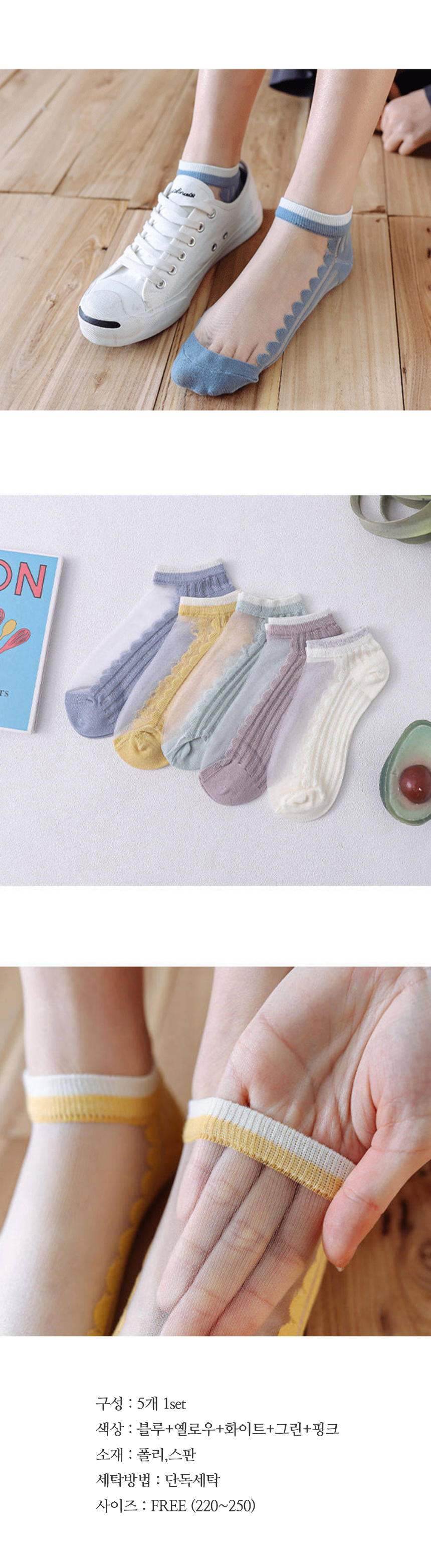 [ 여자 여성 시스루 얇은 단목 컬러 패션 양말 5개 세트 ]