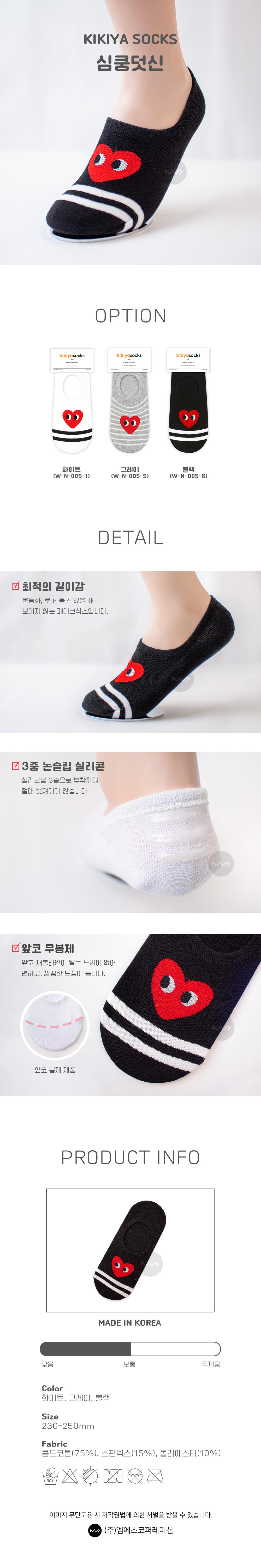 키키야 페이크삭스 여름덧신 패션양말 하트심쿵 덧신