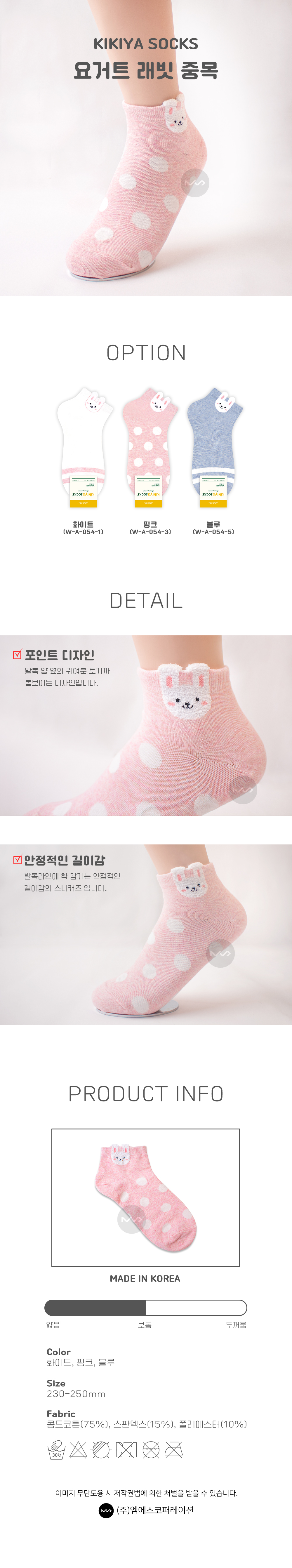 키키야 여성 스니커즈 패션삭스 중목양말 요거트 래빗