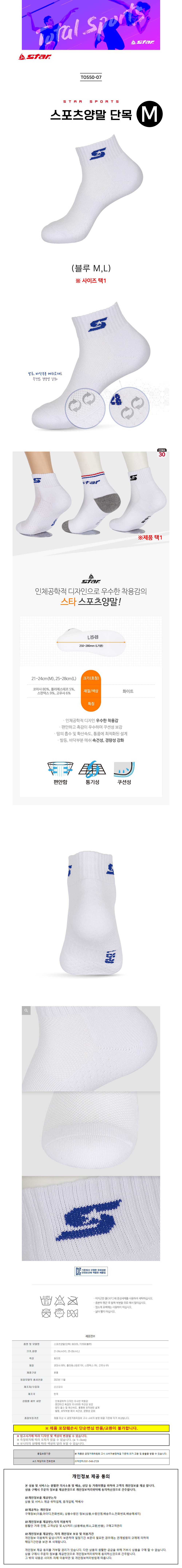 스타스포츠 스포츠양말 (단목) (화이트.블루) (M) (TO550-07M)