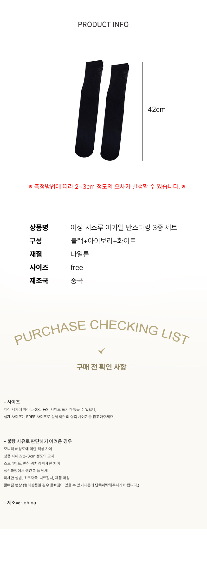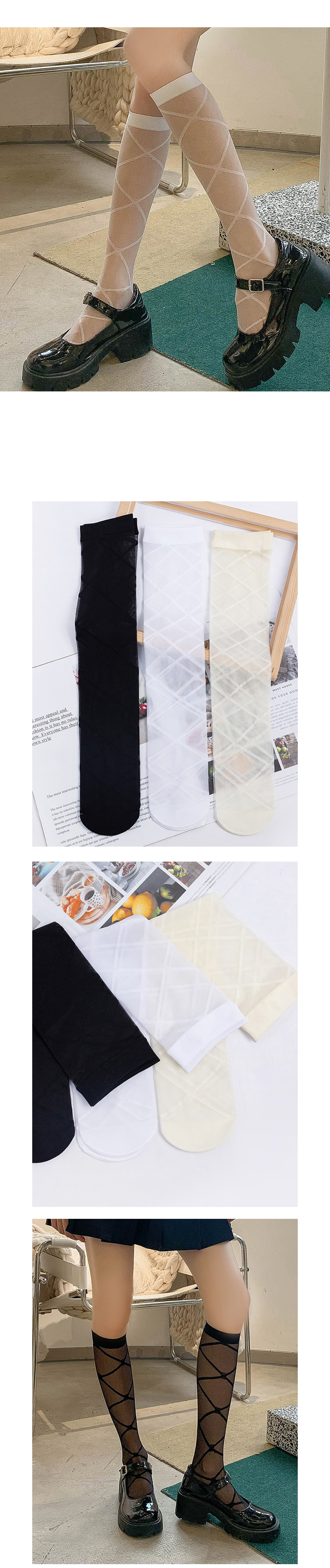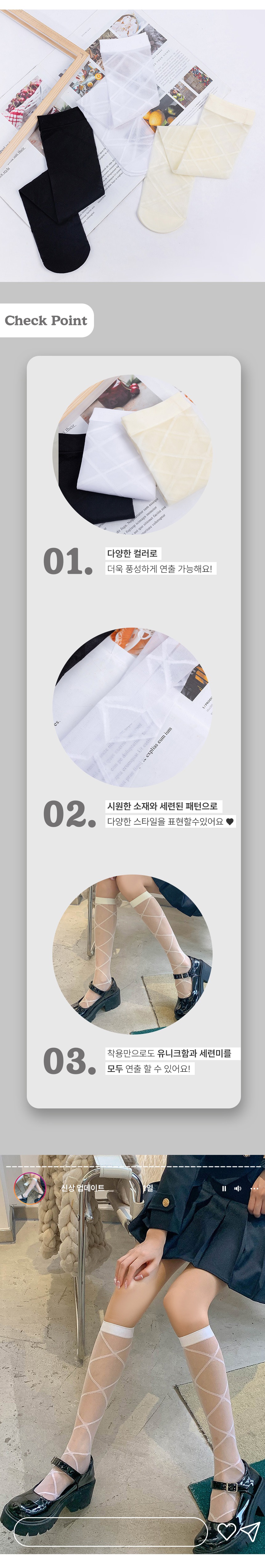 여성 시스루 아가일 반 스타킹 니삭스 3종 세트