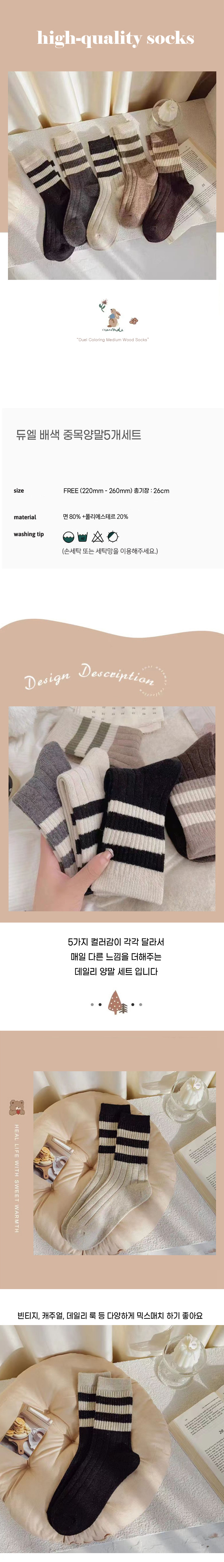 여성 데일리 배색 줄무늬 포인트 중목 양말 6개 세트