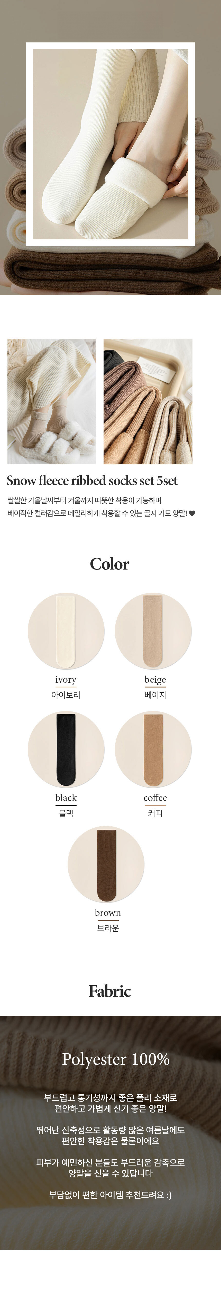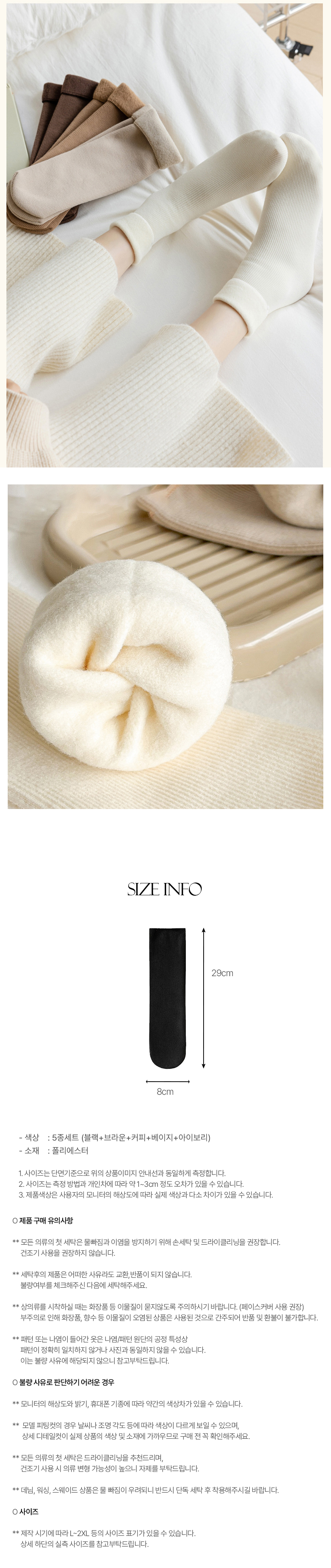 여성 기모 골지 겨울 데일리 여자 양말 5종 세트