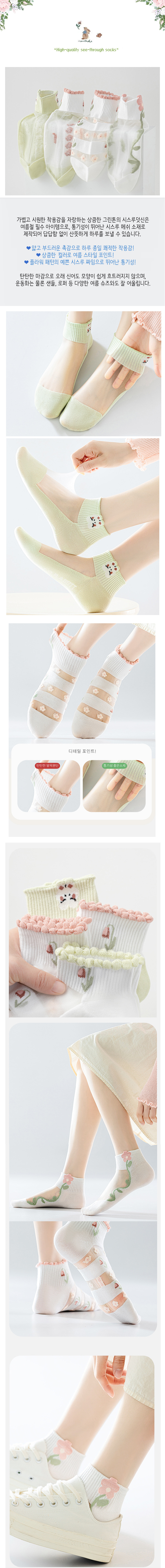 여자 시스루 망사 발목 여름 스니커즈 양말 5개 세트