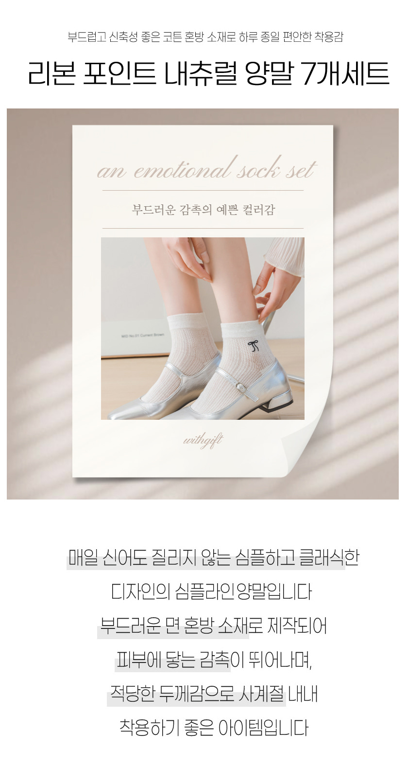 여자 스니커즈 패션 학생 리본 예쁜 양말 7개 세트