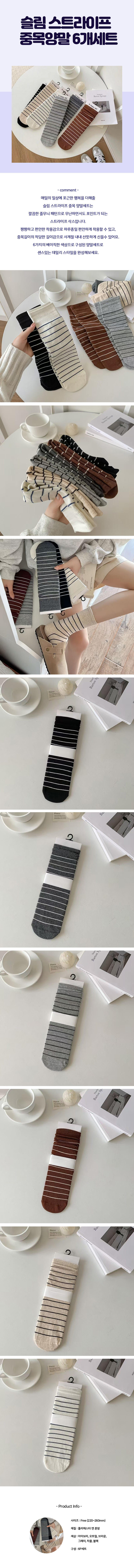 줄무늬 스트라이프 여성 중목 패션 양말 6개 세트